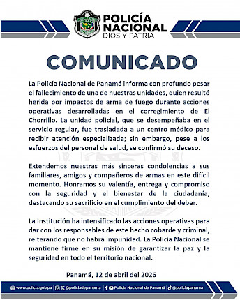 La Policía Nacional de Panamá confirmó el fallecimiento de uno de sus...