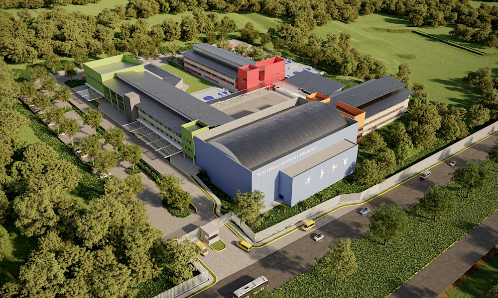 - Gimnasio polideportivo con graderías para 1,500 personas, aulas, camerinos y áreas de entrenamiento.