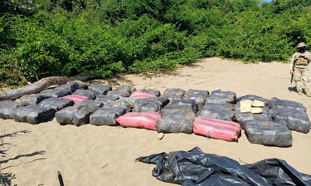 Inmediatamente se activó una operación conjunta entre Servicio Nacional Aeronaval y la Policía Nacional, donde se lograron ubicar 40 bultos de presunta sustancia ilícita que se mantenían ocultos en el sector.