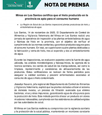 Minsa certifica que hielo producido en Azuero es apto para el consumo humano