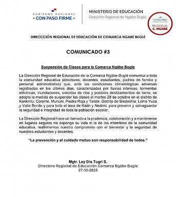 La Dirección Regional de Educación de la Comarca Ngäbe Buglé decidió s...
